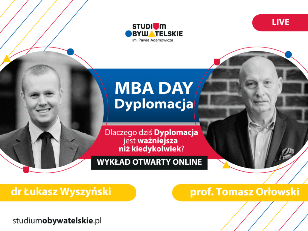 1 października odbyła się transmisja na żywo MBA DAY: Dyplomacja, poświęcona wyjątkowemu kierunkowi studiów podyplomowych w ramach Studium Obywatelskiego im. Pawła Adamowicza. Wydarzenie poprowadzili dr Łukasz Wyszyński oraz prof. Tomasz Orłowski, którzy w fascynujący sposób przybliżyli uczestnikom znaczenie dyplomacji w dzisiejszym, dynamicznie zmieniającym się świecie.