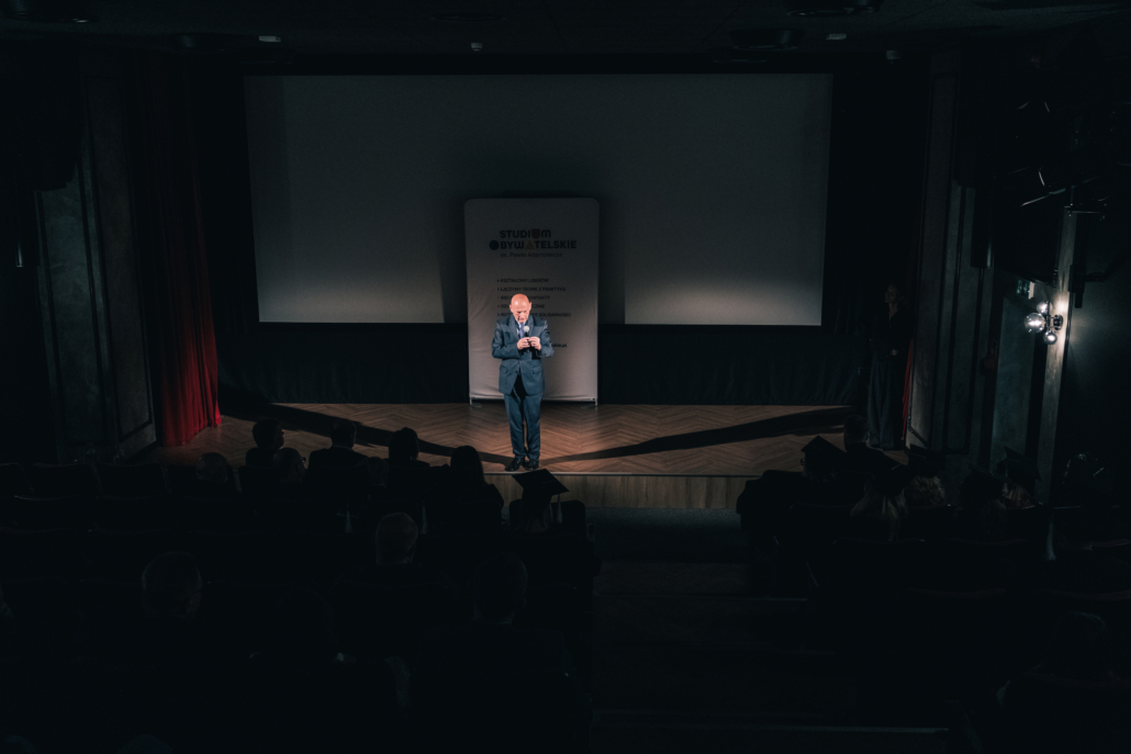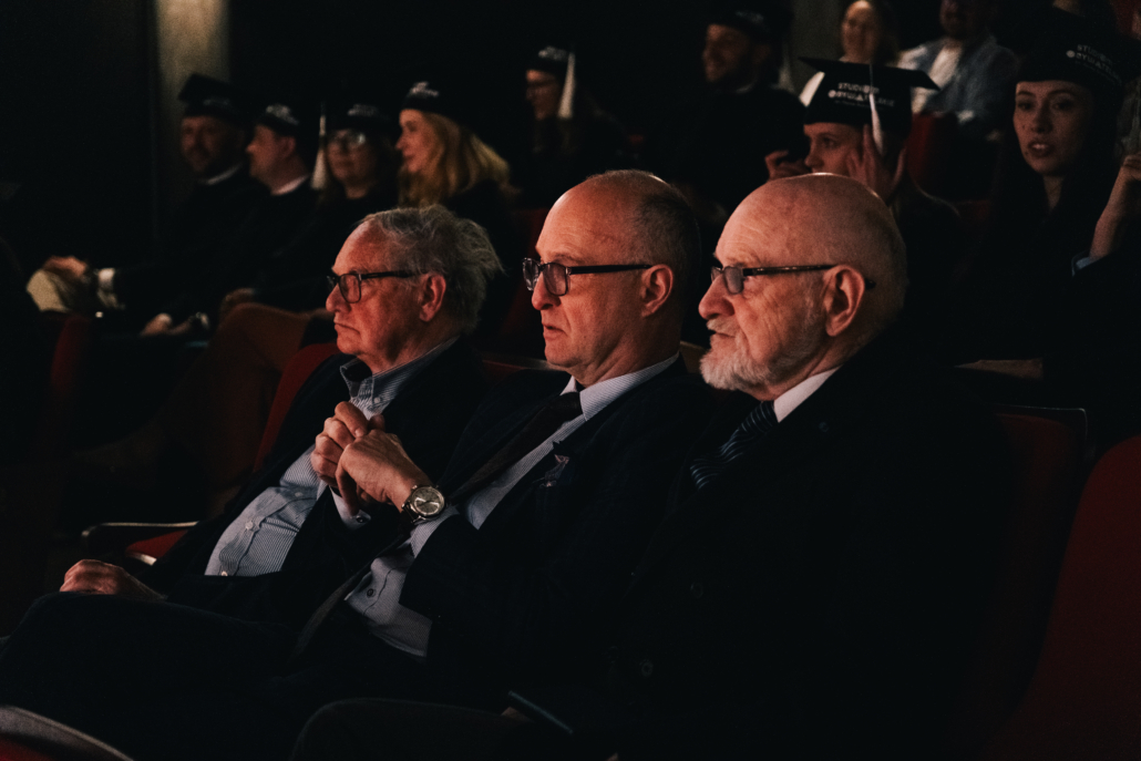 Ceremonia rozdania dyplomów miała miejsce w niezwykłej scenerii Kina Spektrum, gdzie – z niekrytą dumą – mogliśmy wypowiedzieć słowa: Vivat Academia, vivant Professores! 🎓